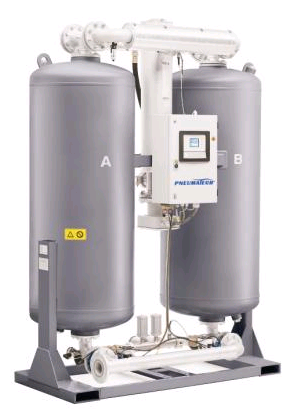 在無熱再生式干燥機(jī)的基礎(chǔ)上增加一只加熱器使用來再生的氣流在升高溫度后對干燥劑進(jìn)行加熱再生,既可提高再生的效果,又可減少再生耗氣量。